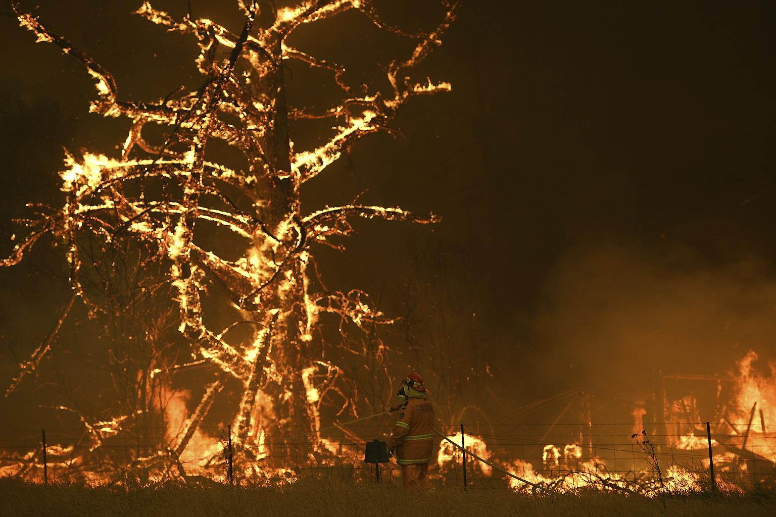 In a photo from Dec 21, 2019, the New South Wales Rural Fire Service crew fight the Gospers Mountain Fire as it impacts a property at Bilpin in New South Wales.