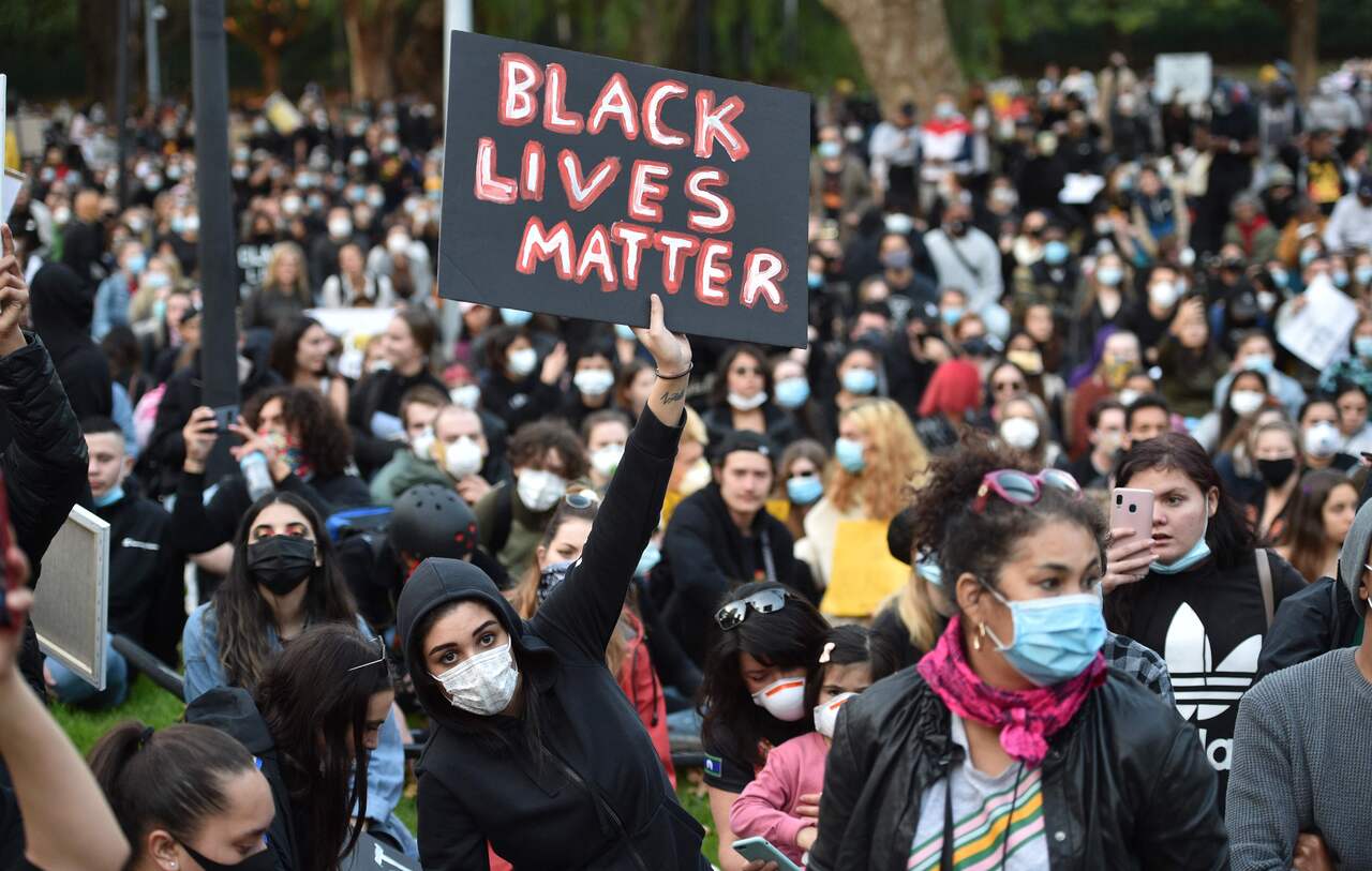 Demonstrators take part in a Black Lives Matter protest in Sydney, on June 6, 2020.