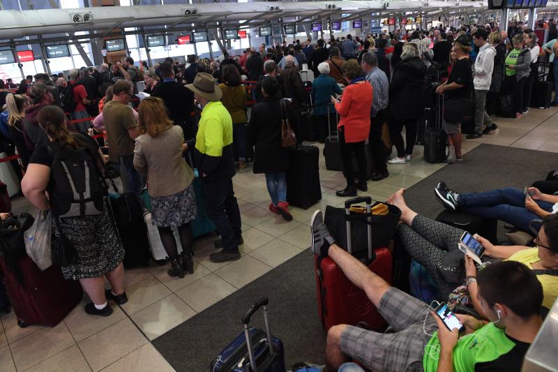 Long lines form at Sydney Airport's Terminal 2, a domestic terminal, on July 31, 2017, as passengers are subjected to increased security.