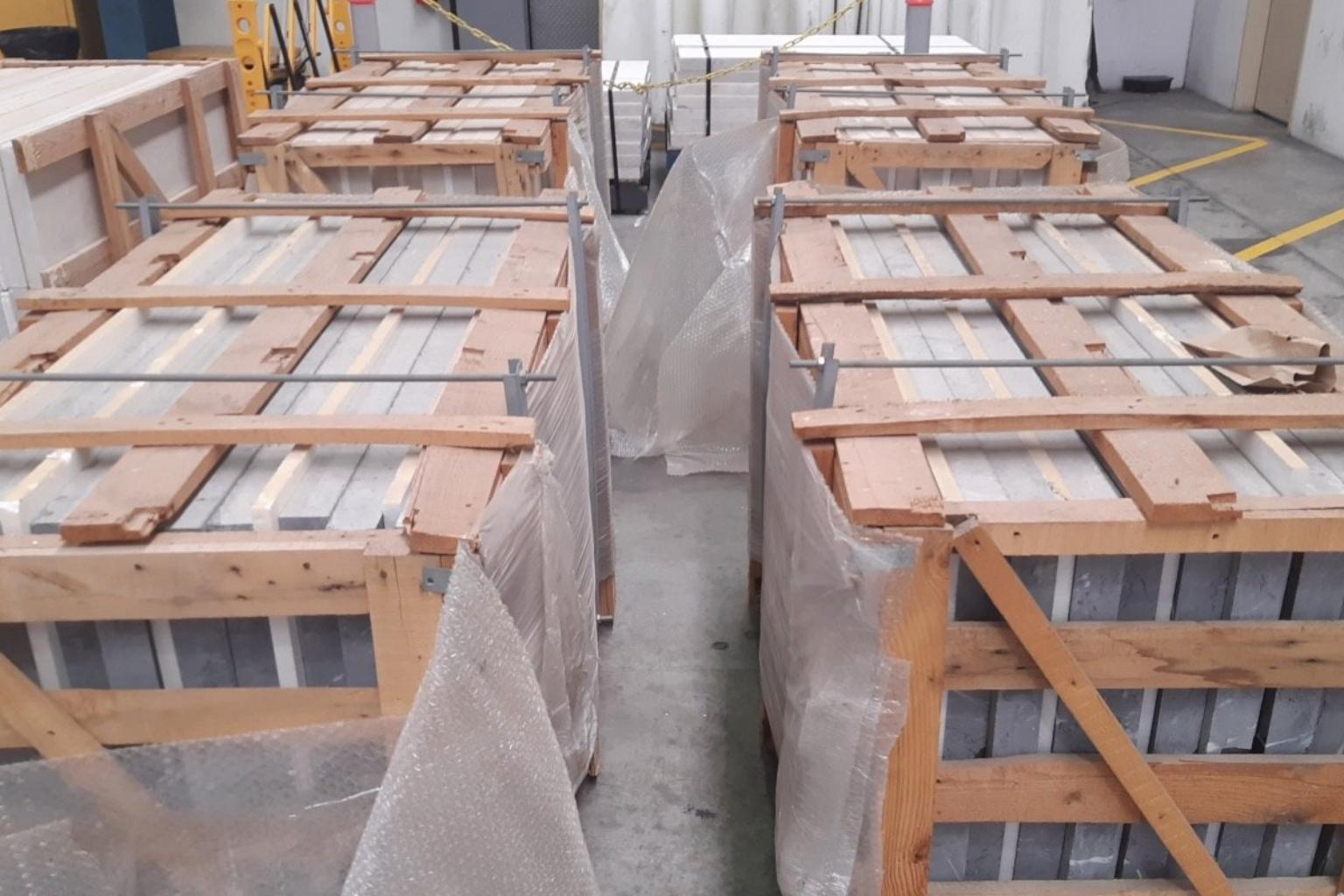 More than 1,800kg of methylamphetamine was found hidden in marble stone slabs in containers that arrived in Sydney in recent weeks.