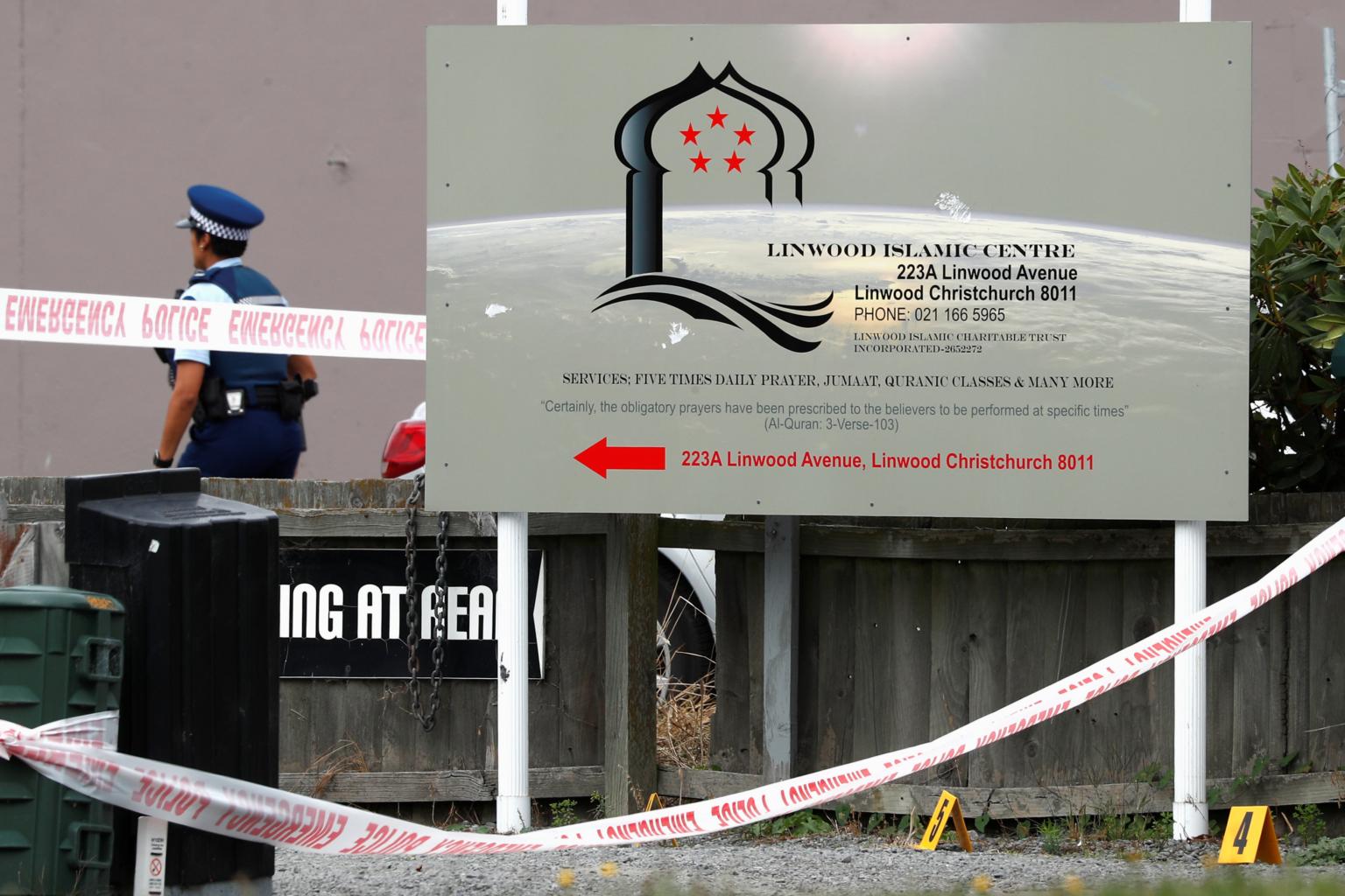 A police officer stands outside the Linwood Mosque, in Christchurch, New Zealand.