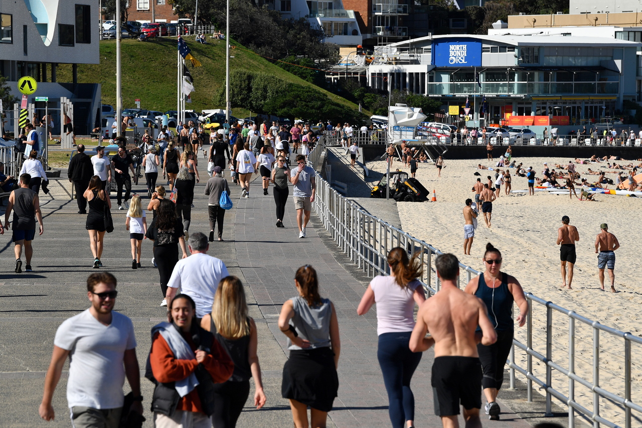 People walk at Bondi Beach in Sydney on Aug 11, 2021.