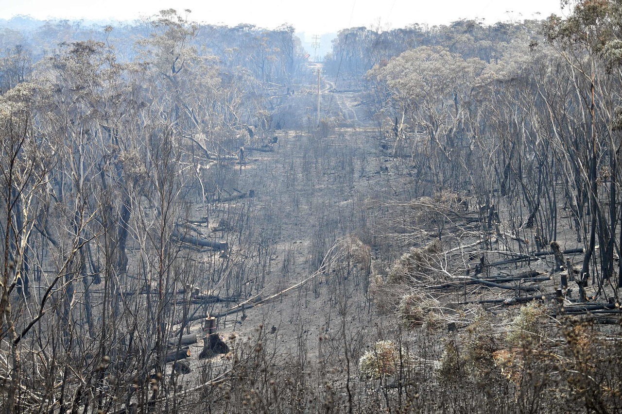 Burnt trees seen after a bush fire in Mount Weison in Blue Mountains, on Dec 18, 2019.