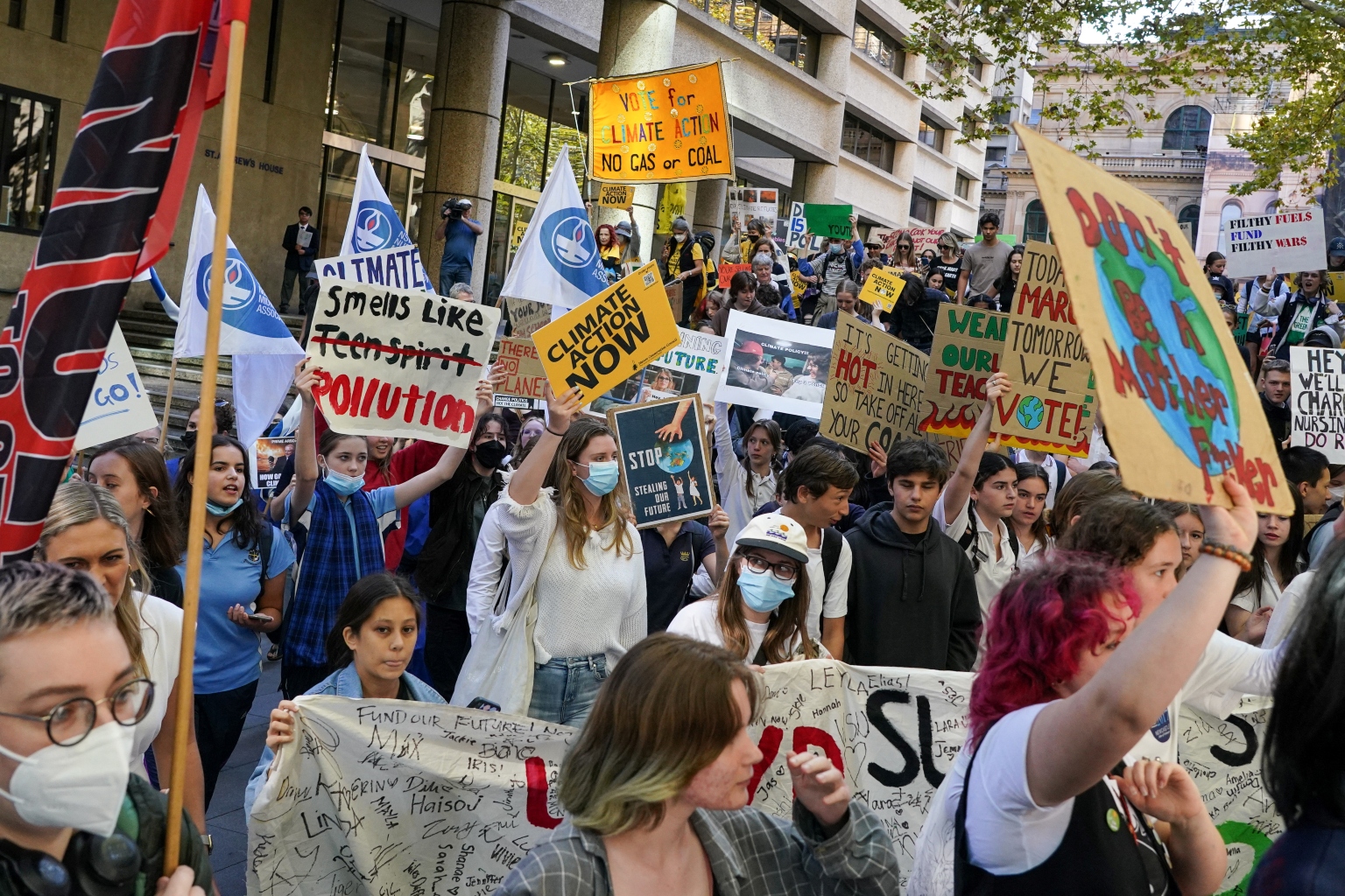 Students at a rally in Sydney demanding further action on climate change, on May 6, 2022.