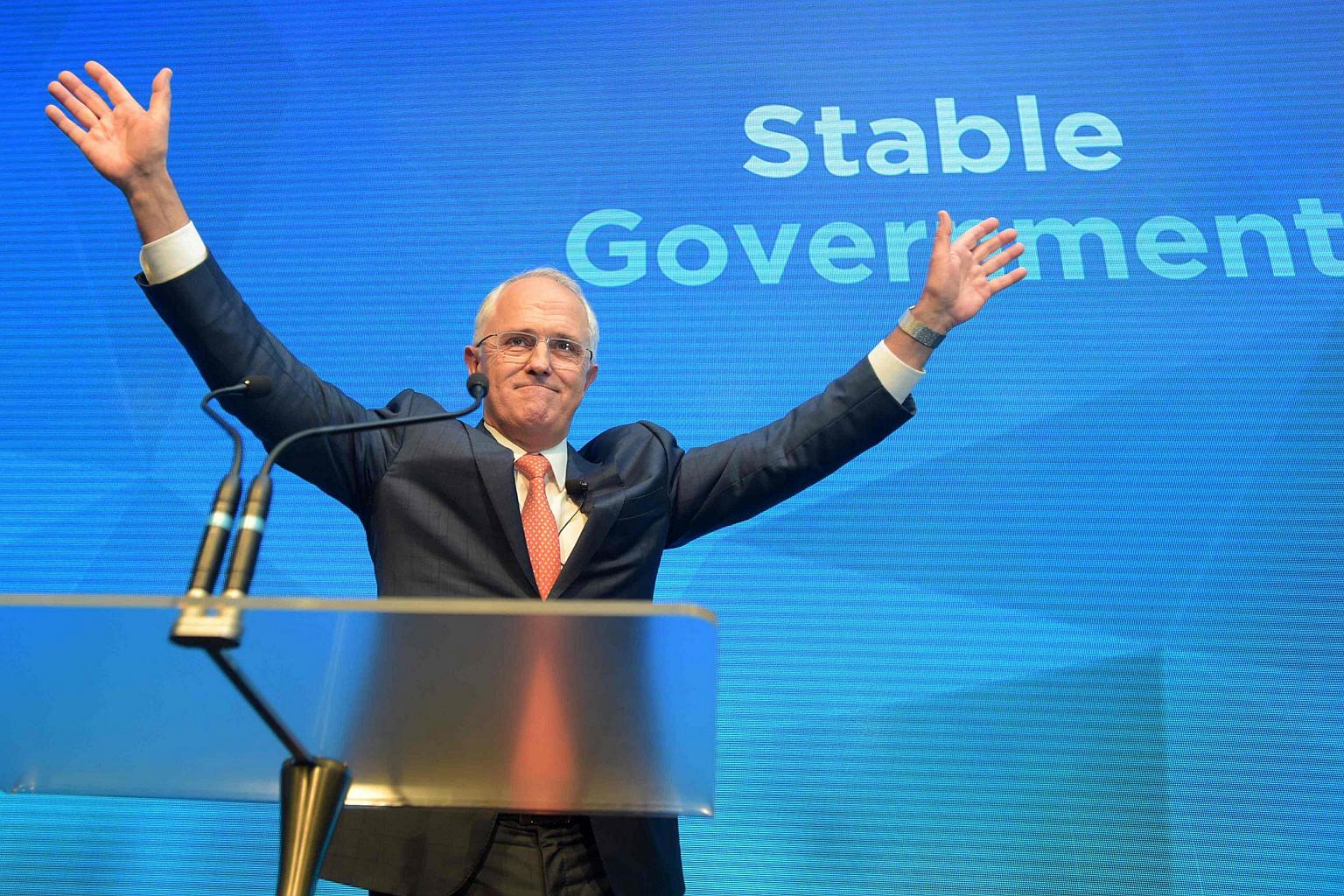 Australian PM Malcolm Turnbull reacts after addressing party members at the Coalition Campaign Launch in Sydney on June 26.