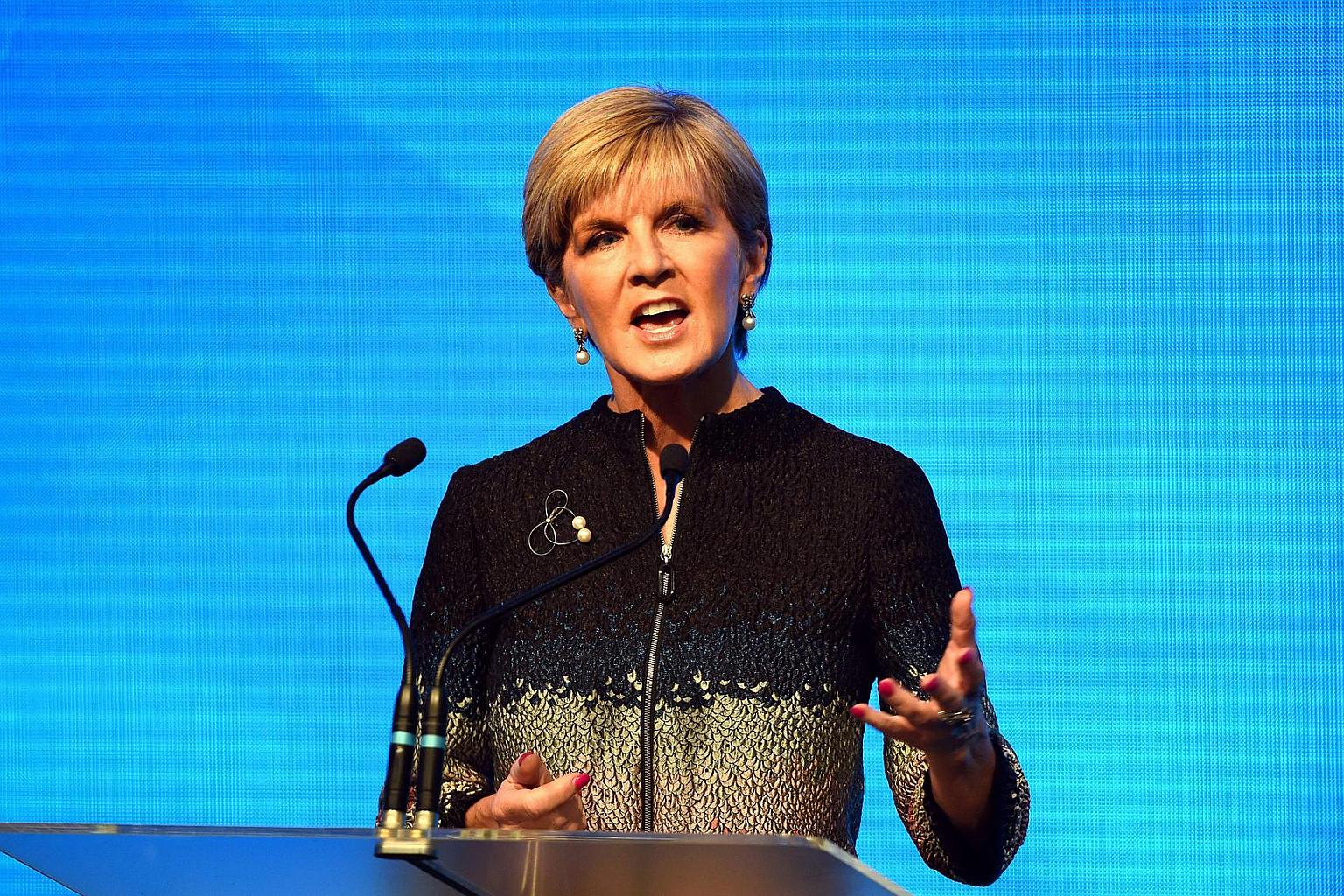 Ms Bishop said Canberra also reserved the right to sail ships and fly planes close to some of the reefs and islands claimed by China.