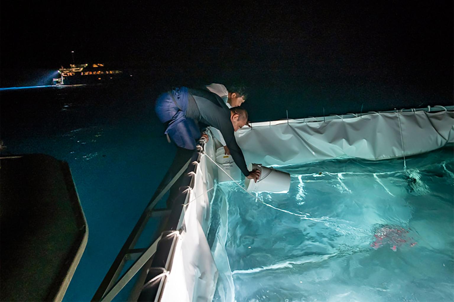 The "Larval Restoration Project" launch was timed to coincide with the annual coral spawn on the reef, which began earlier this week and will last only about 48 to 72 hours.