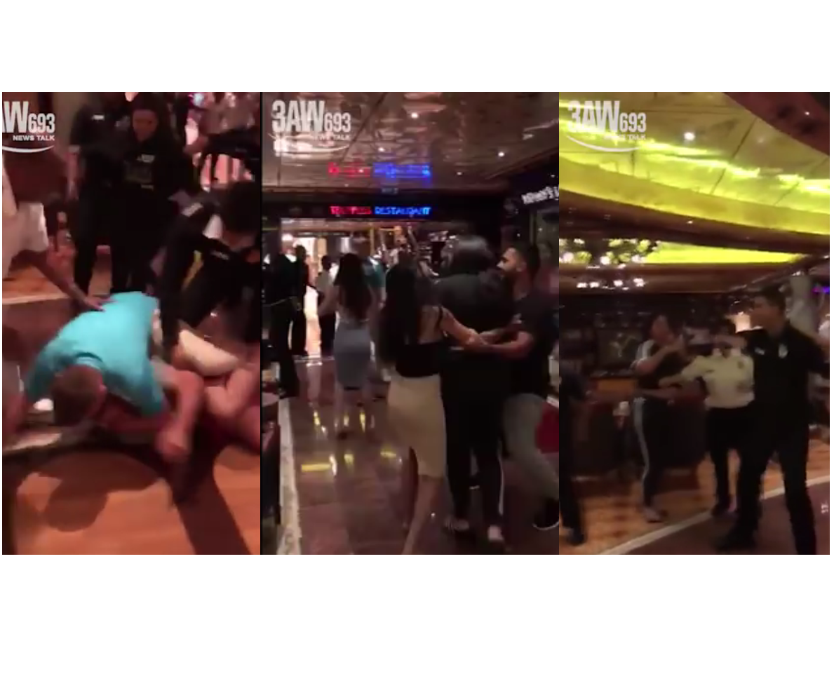Video taken by passengers showed more than a dozen people fighting on the ship as crew members struggled to break up the violence.
