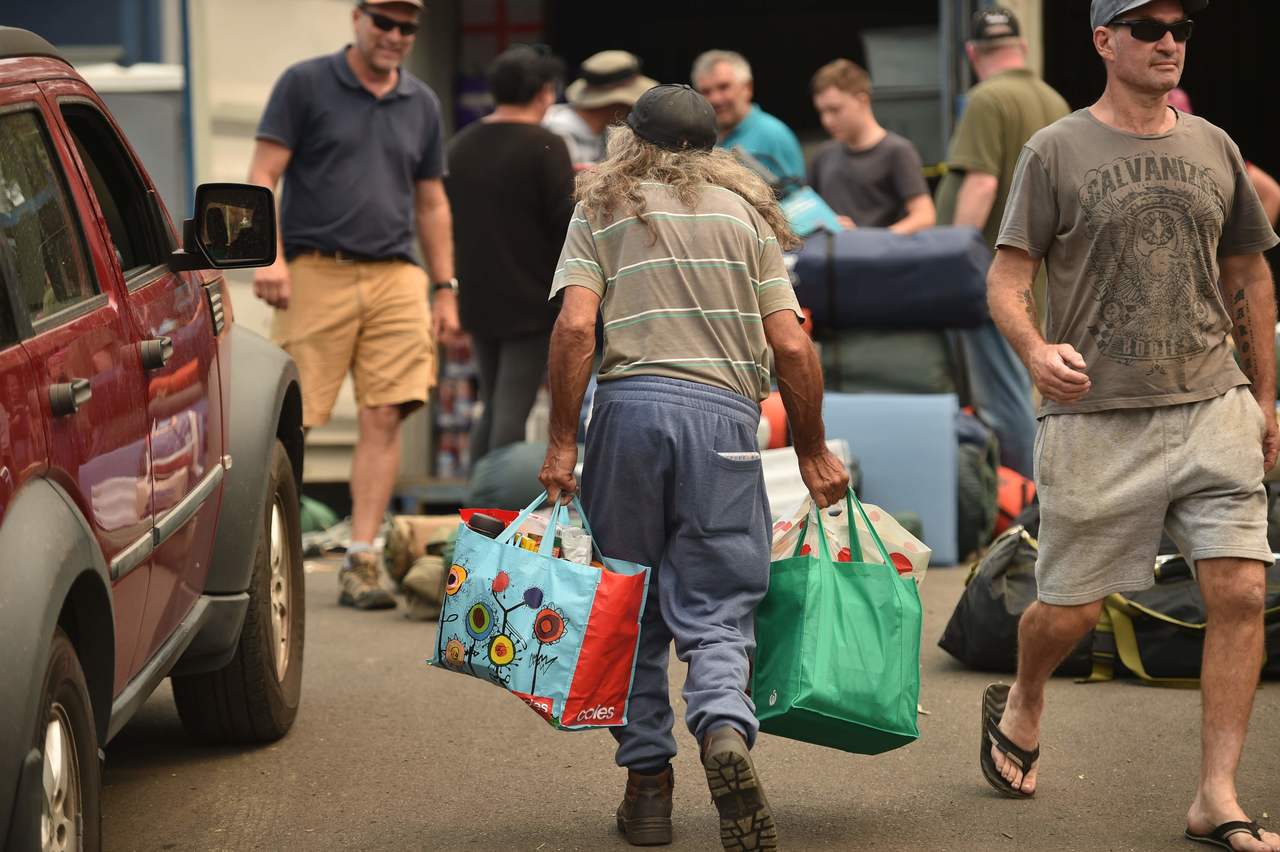 A photo taken on Jan 11, 2020, shows residents collecting donated items in the town Mogo in New South Wales where a bush fire destroyed homes and businesses.