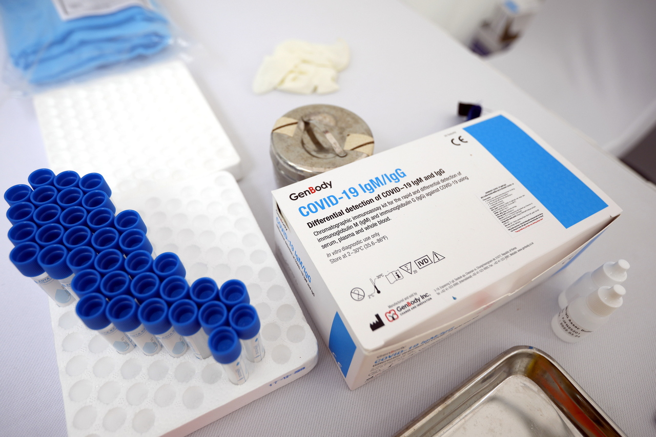 A closeup photo of the test kit to diagnose Covid-19 infection in Hanoi, Vietnam on March 31, 2020.
