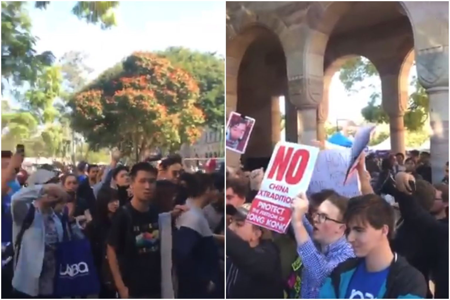 The rival groups faced off at a University of Queensland campus in Brisbane, with one side singing pro-China songs and the other chanting "free Hong Kong".