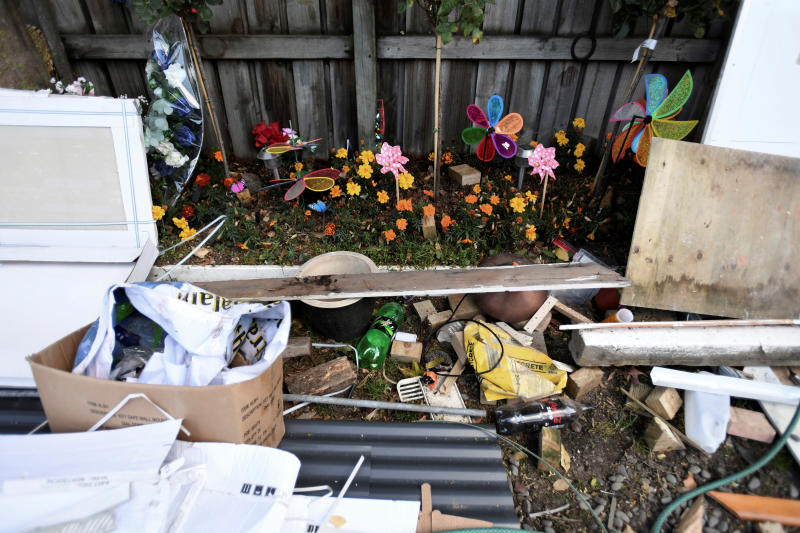 Flowers that were left in remembrance are planted in a garden to grow among the debris from renovations at the Linwood Mosque in Christchurch, New Zealand, on April 25, 2019.