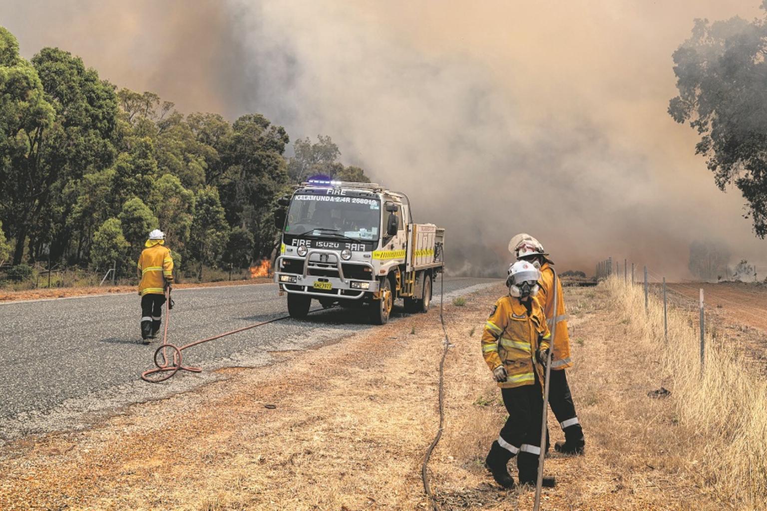 Firefighters battling a blaze at Wooroloo, near Perth, Australia on Feb 2, 2021.