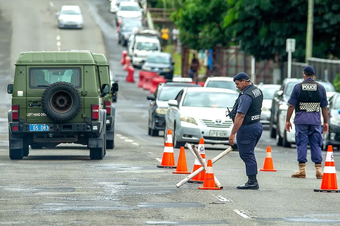 Military vehicles on the streets of Suva on Friday. The military was called in to assist police maintain law and order on Thursday.
