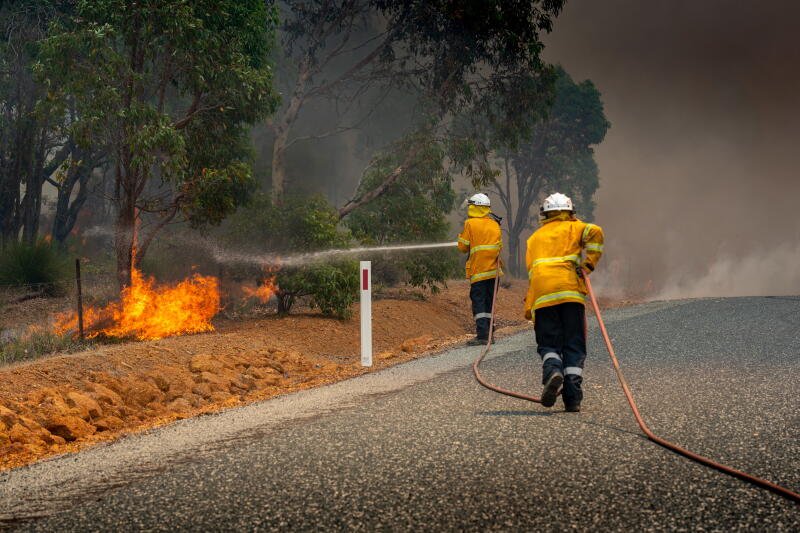 Firefighters battling a blaze at Wooroloo, near Perth, on Feb 2, 2021.