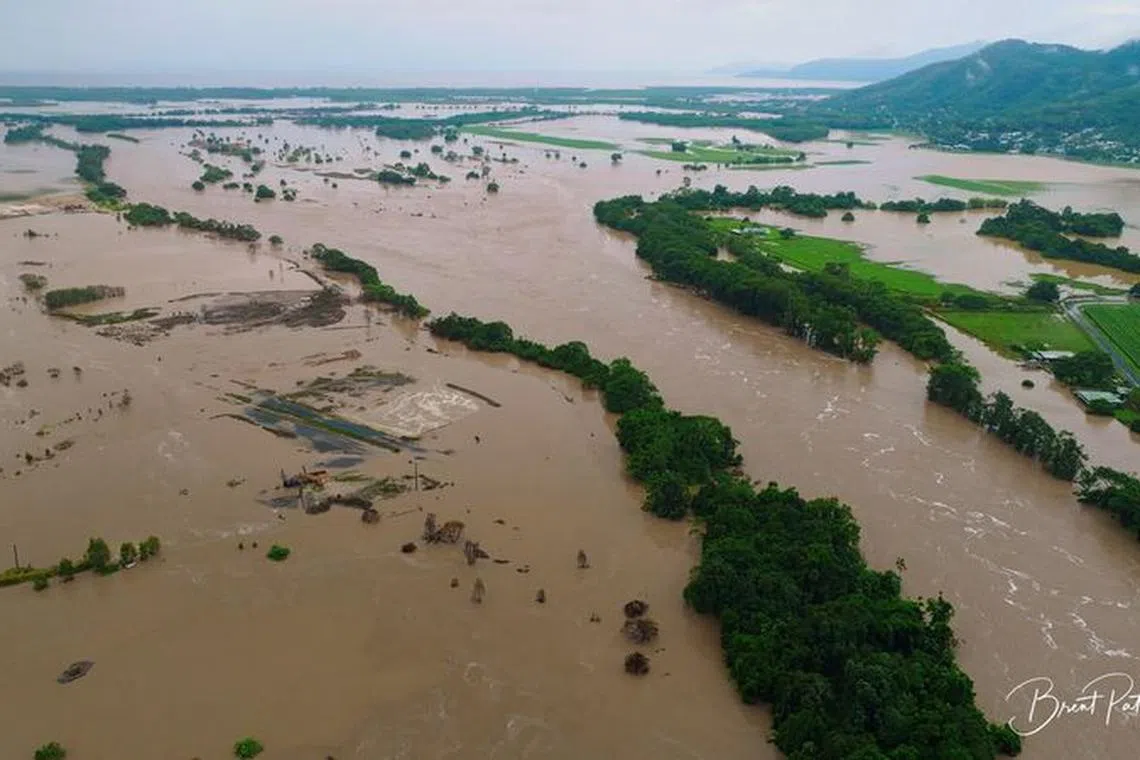 An aerial view shows flooding caused by heavy rain and water gushing through the Barron River, in Cairns, Queensland, on Dec 18.
