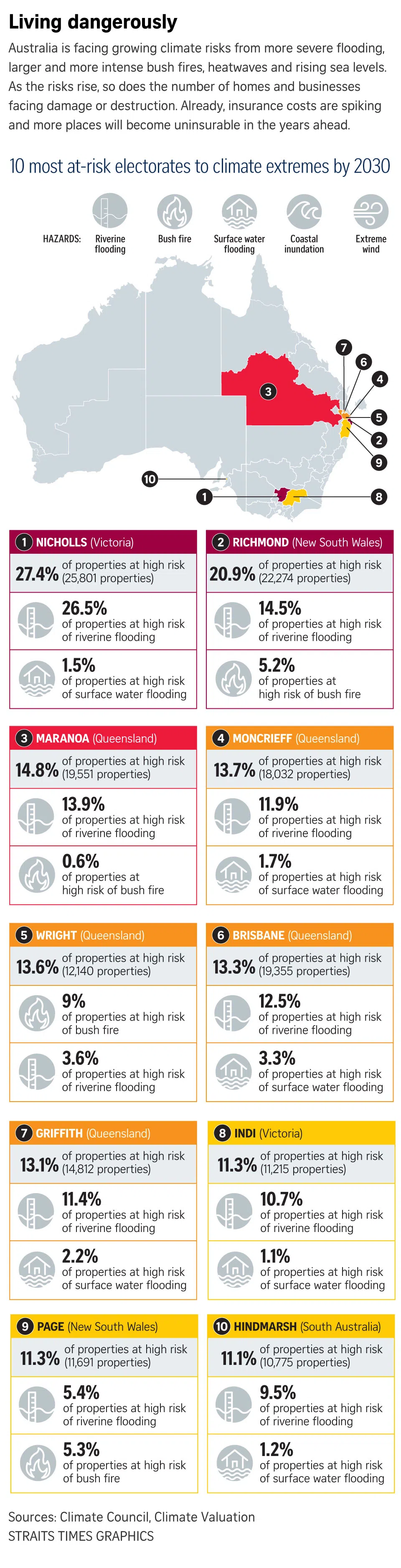 A report released last week by the Actuaries Institute found that home insurance premiums in the nation’s highest-risk properties, such as those in flood-prone areas, spiked in the last year by up to 50 per cent, compared with a 28 per cent jump nationwide to A$1,894 (S$1,650) a year.