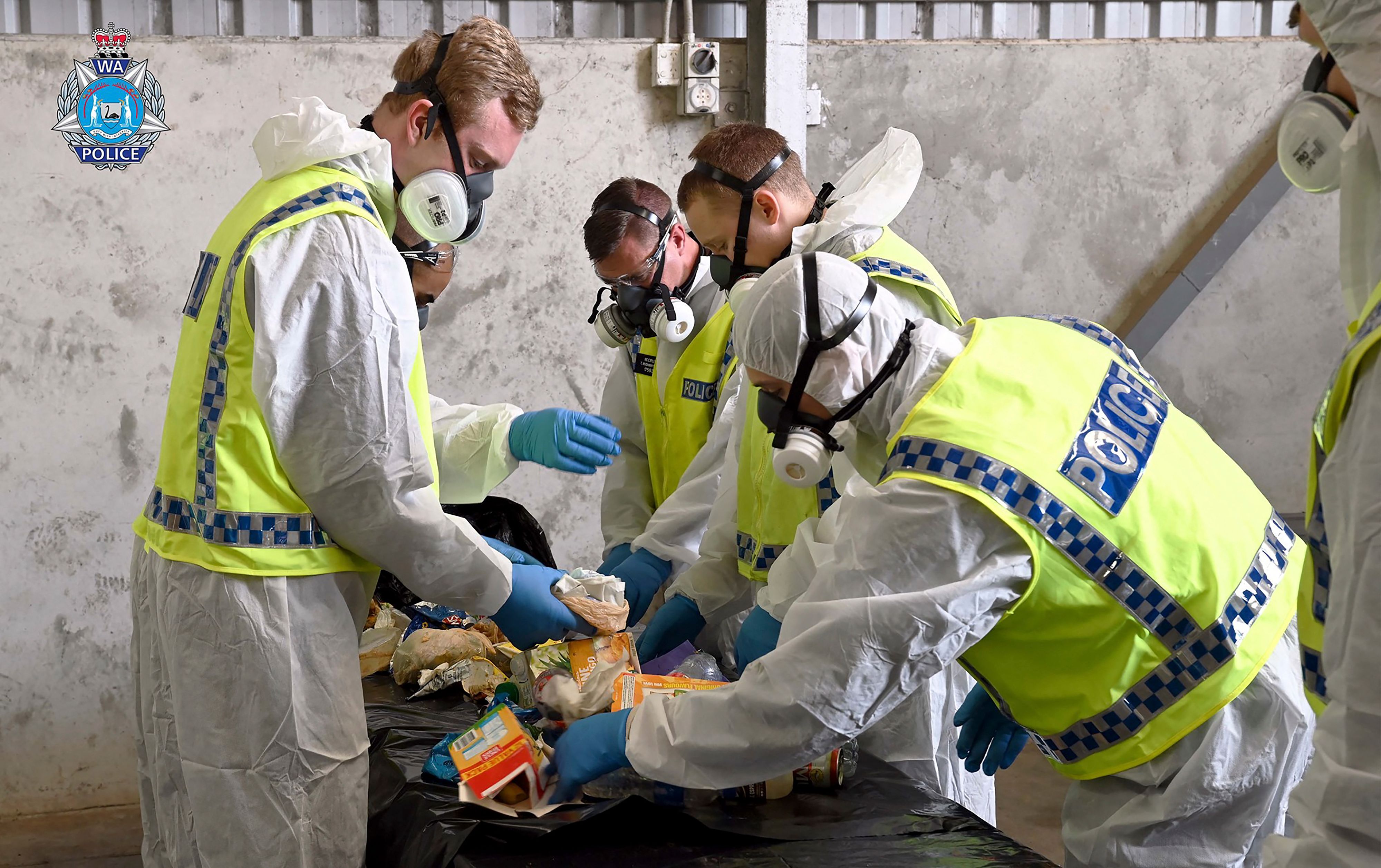 This undated handout photo received on Nov 3, 2021 from the Western Australian Police Force shows police searching through rubbish collected during their search for Cleo Smith.