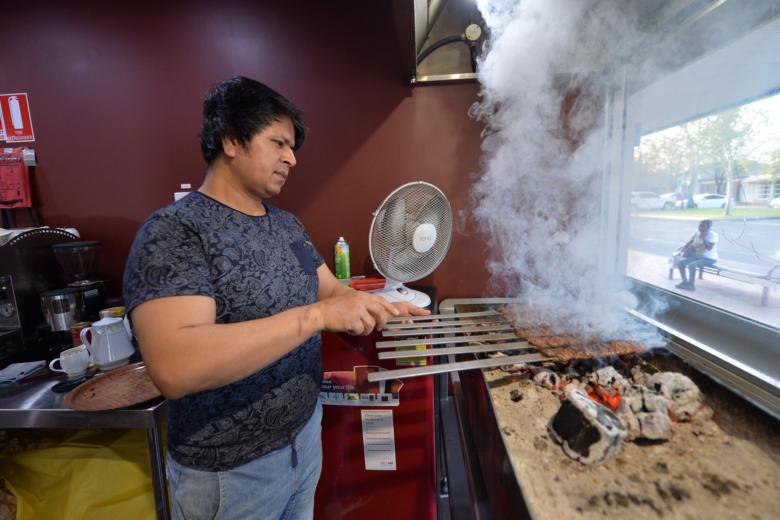 Hazara refugee Ali cooking kebabs in his Afghan Friendship Restaurant in Griffith, Australia.