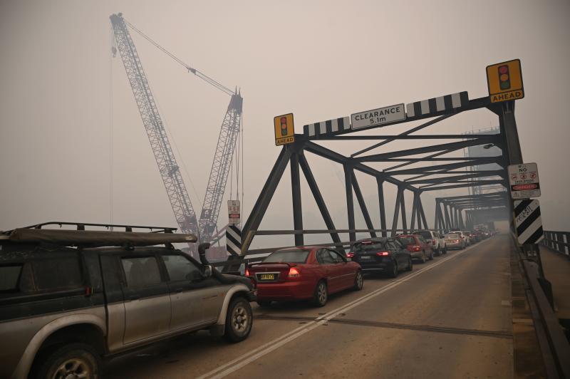 Authorities urged thousands of residents and tourists to leave a coastal strip about 300km long while they could on Thursday. Queues of traffic stretched for kilometres to the north from the main tourist town of Batemans Bay and inland towards Canberra.