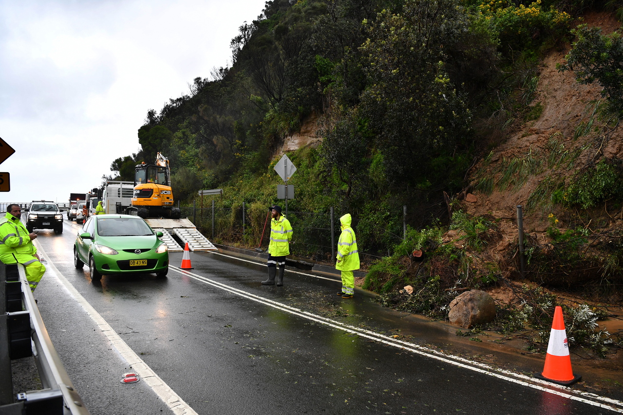 A landslide closes a lane at Coalcliff, south of Sydney, on April 7, 2022.