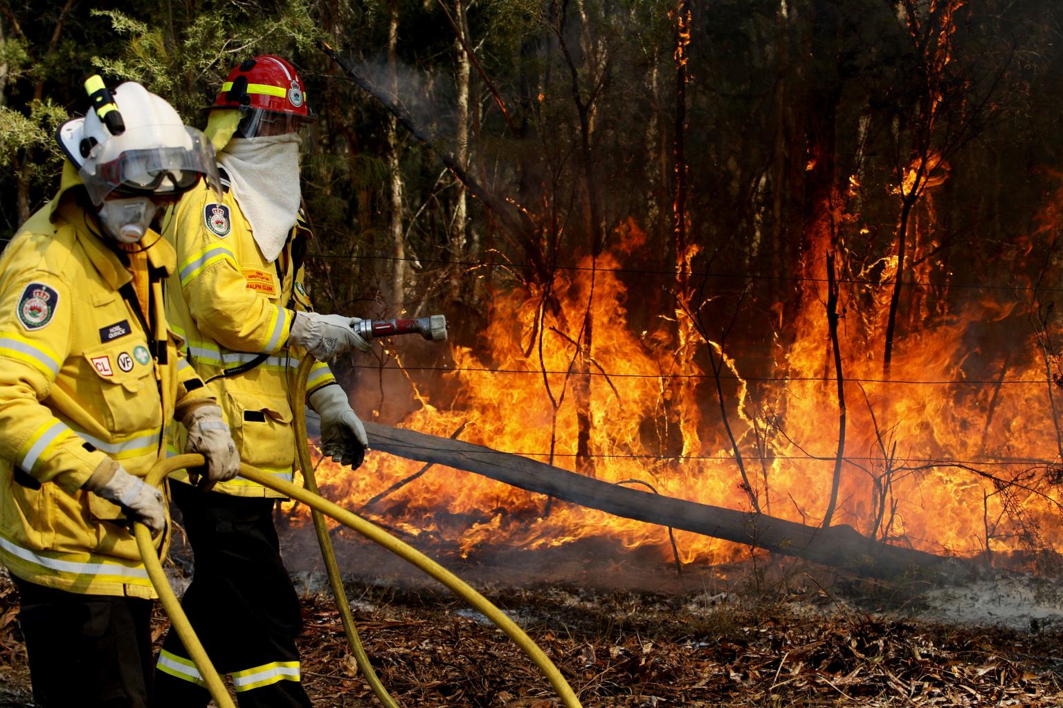 Firefighters work to extinguish a fire near Forster, New South Wales, Australia, on Oct 27, 2019.