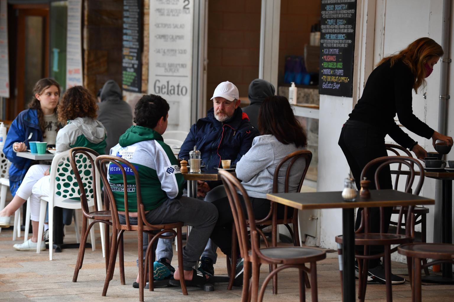 People dining at a cafe after nearly four months of lockdown in Sydney, on Oct 11, 2021.