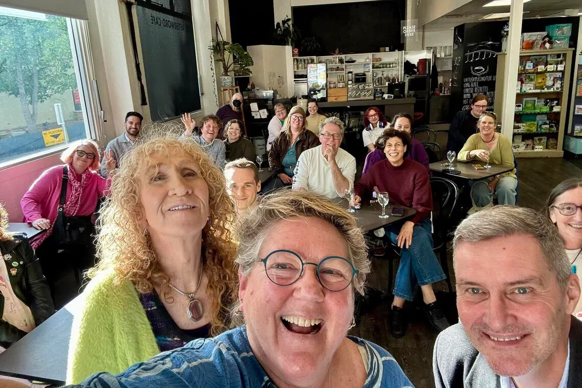 Mr Rodney Croome (front, right) and Professor Paula Gerber (front, centre) at the launch of Prof Gerber’s book about transgender human rights on Nov 20.