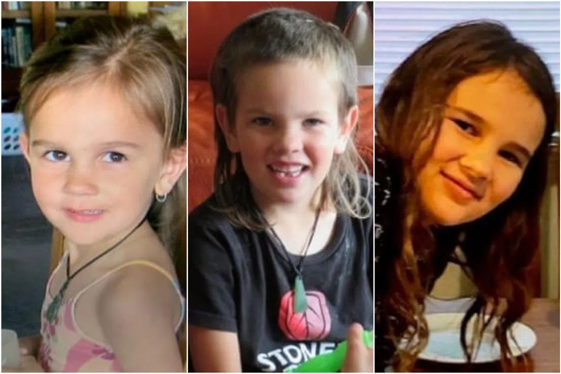 Tom Phillips absconded with his three children (from left) Ember, Maverick and Jayda in December 2021.