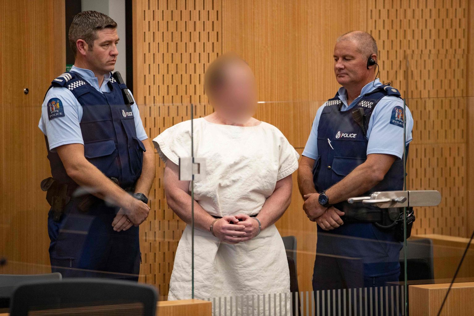 Judge Paul Kellar of the Christchurch District Court ordered that any photos of Tarrant be pixelated to obscure his image.