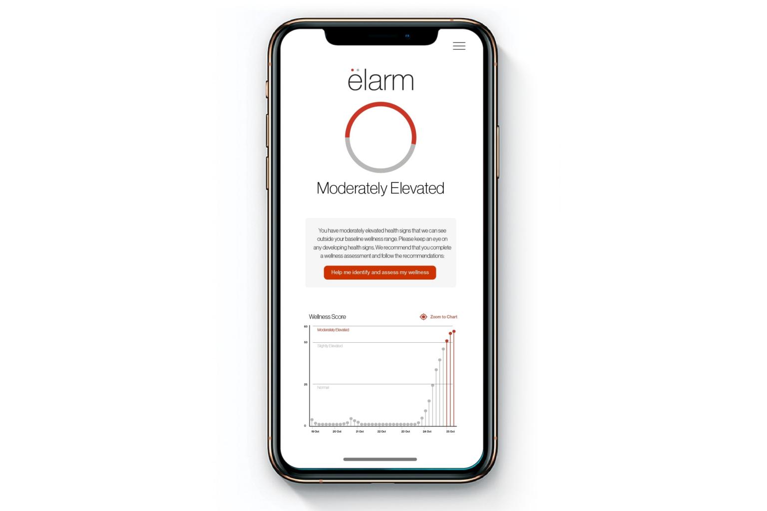 Elarm establishes a health baseline for each user and alerts them if there are physiological changes consistent with Covid-19.