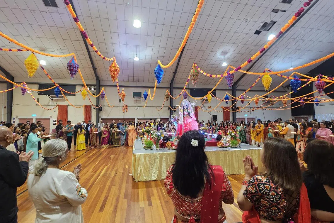 Devotees gathering over nine days to celebrate Navratri Festival at a temple in Wellington in 2024.