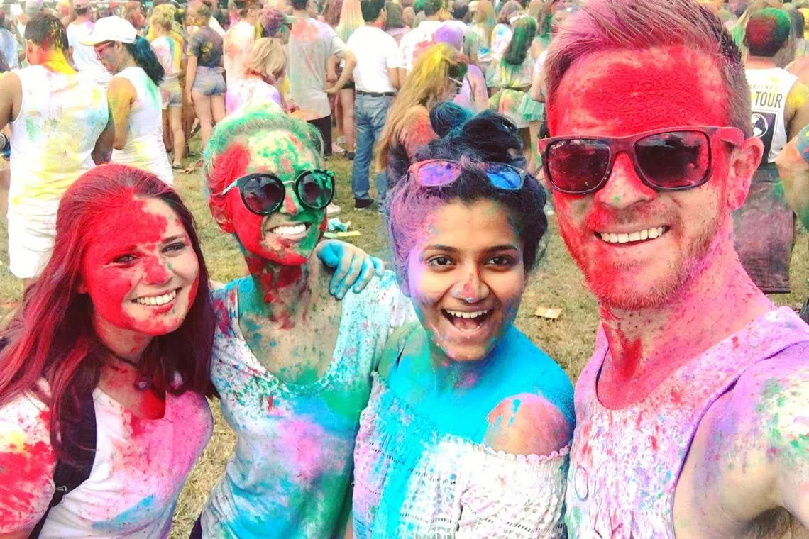 Apoorva Rajashekar (second from right) took part in Holi, or the Festival of Colours, in Auckland a couple of years ago with friends.