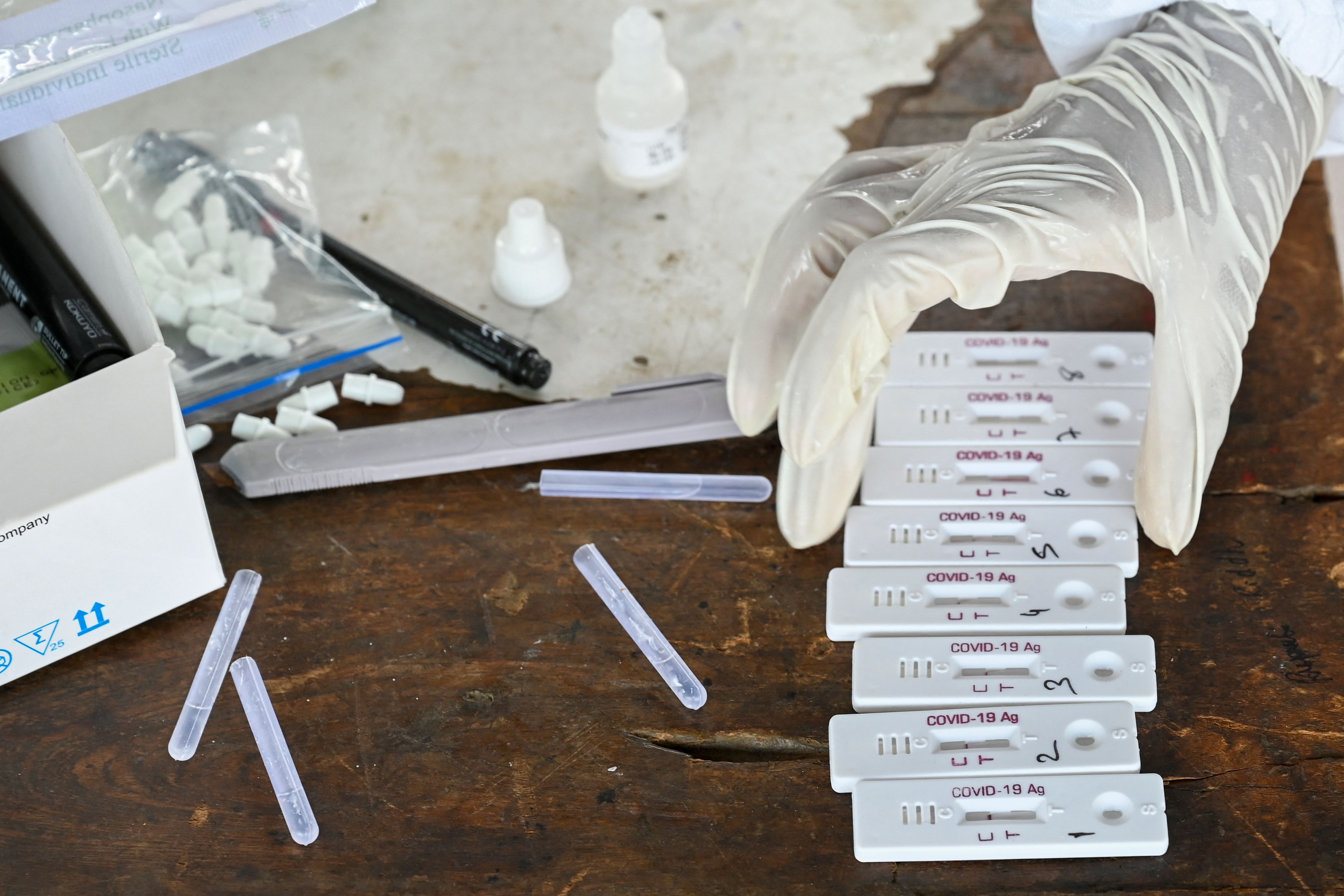 Rapid Antigen test samples of passengers in Mumbai on April 14, 2021.