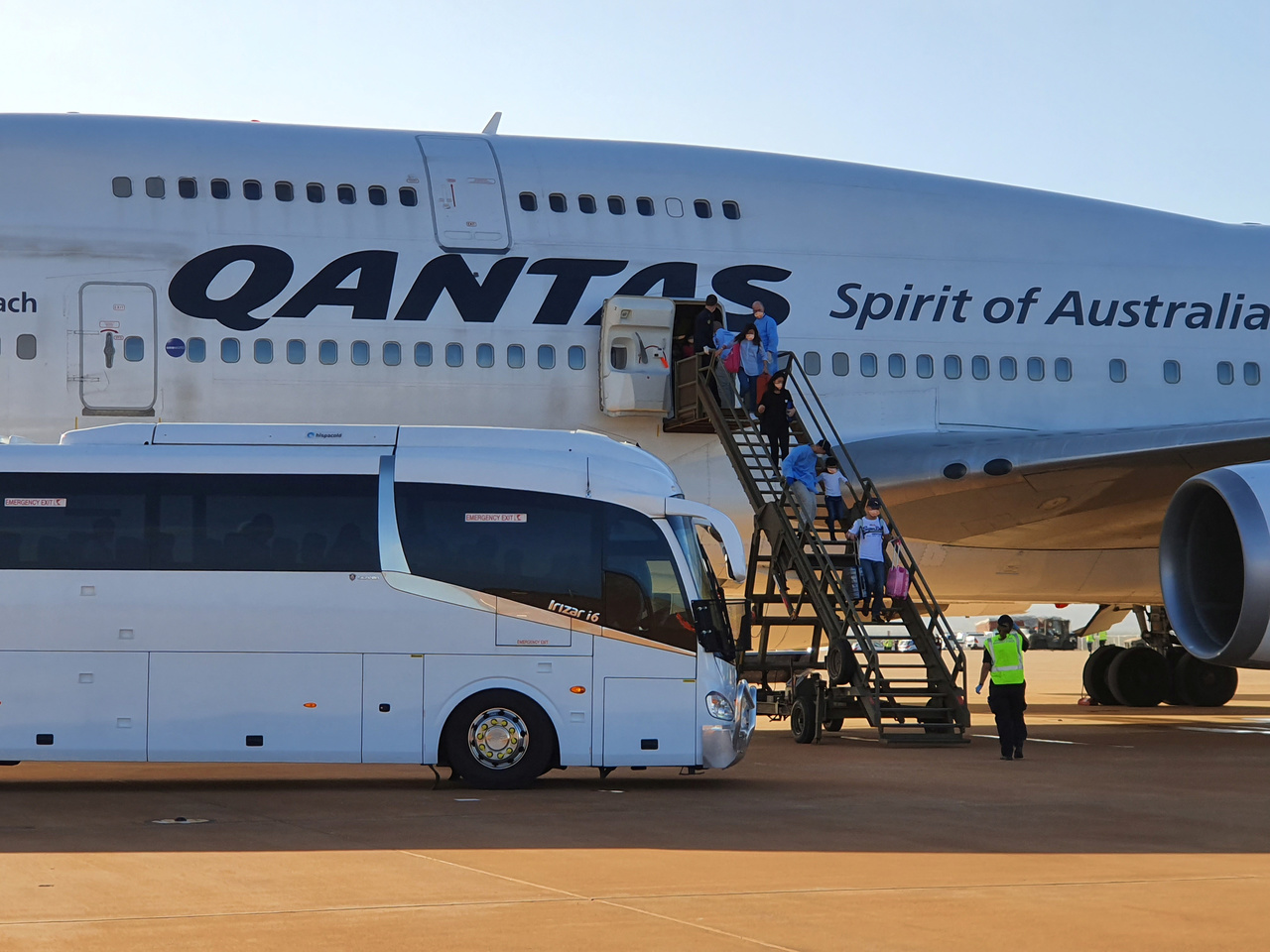Evacuees from Wuhan arrive in Australia on board a Qantas Boeing 747 plane on Feb 3, 2020.