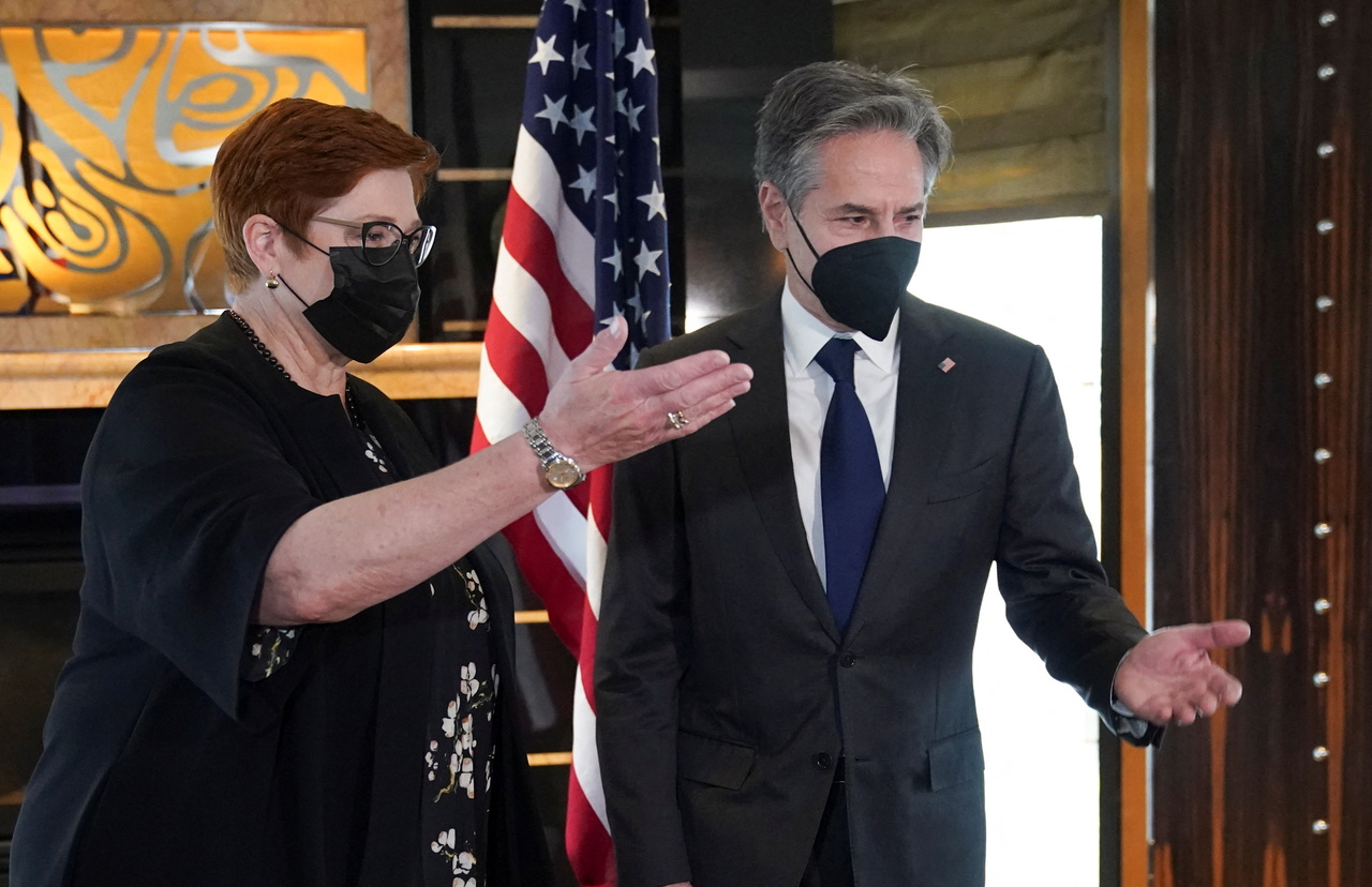 US Secretary of State Antony Blinken (right) meeting with Australian Foreign Minister Marise Payne at the Quad meeting in Melbourne on Feb 11, 2022.