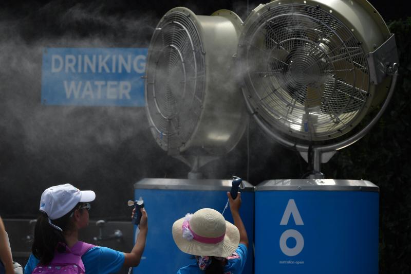 The extreme heat did not deter tennis fans however, who flocked to Melbourne Park for the Australian Open tennis semi-finals - although many made use of mist tunnels and fans to keep cool.