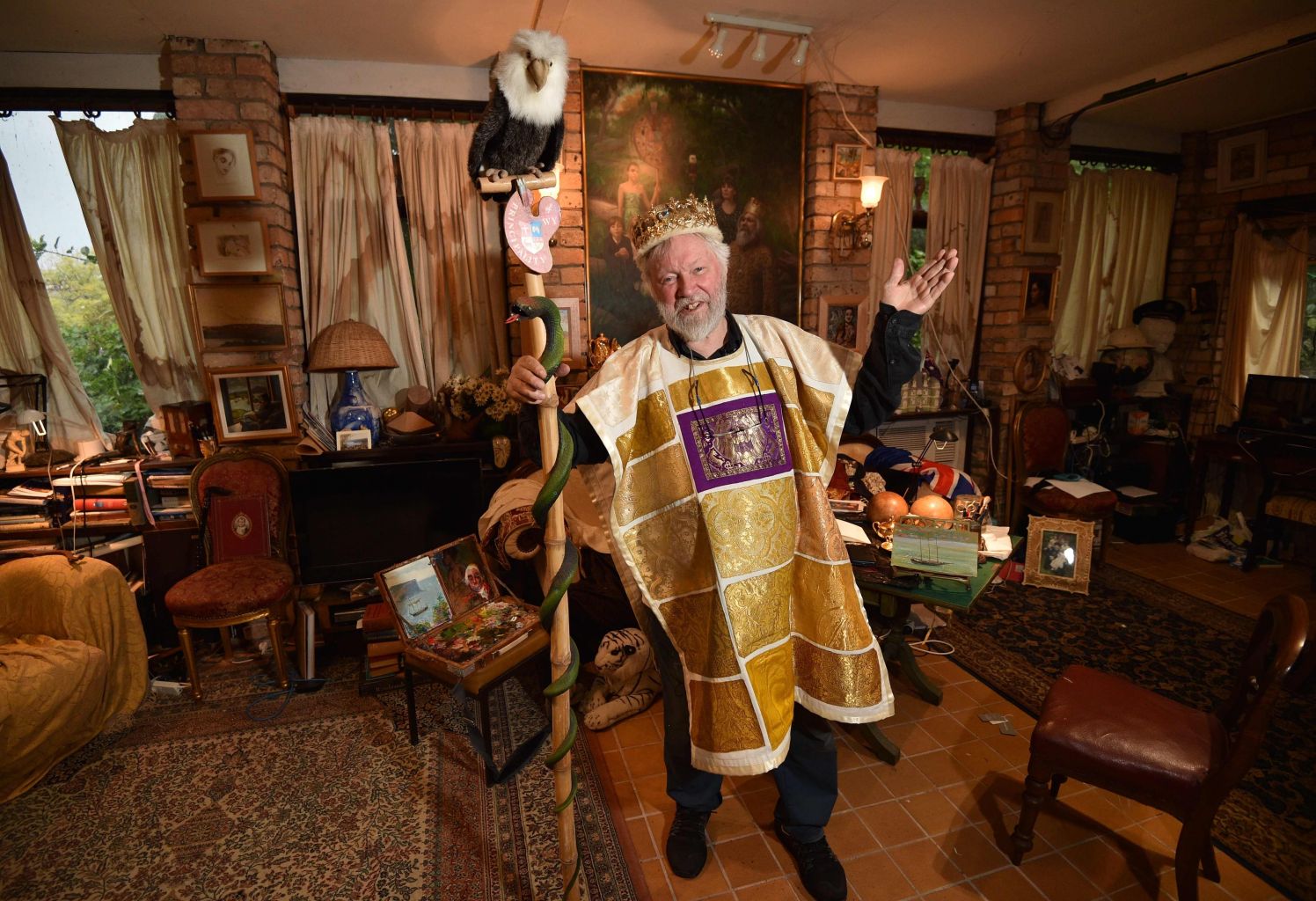 SYDNEY (AFP) - Lounging on a sofa in his flowing robes, a gold crown resting on his snowy hair and a stuffed white toy tiger at his feet, Paul Delprat looks every bit a monarch.