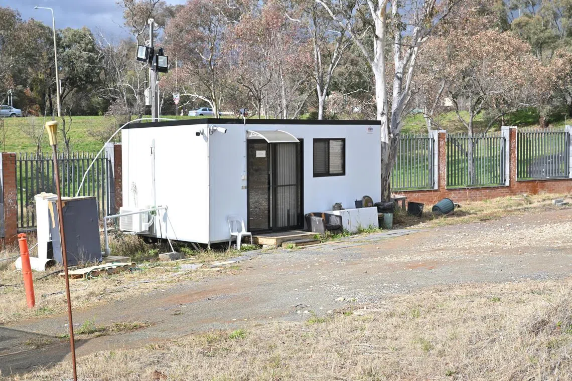 A man believed to be a Russian diplomat at a security shed on a parcel of land in Canberra where Australia has blocked Moscow from building a new embassy.