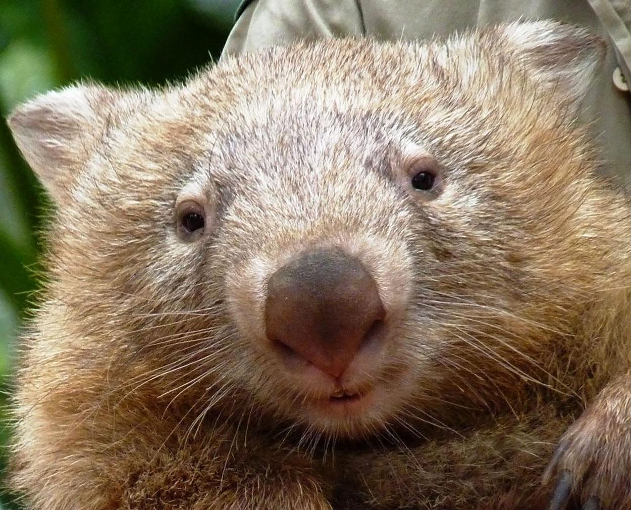 Bare-nosed wombat Tonka looking into the camera at the Billabong Sanctuary in Townsville.