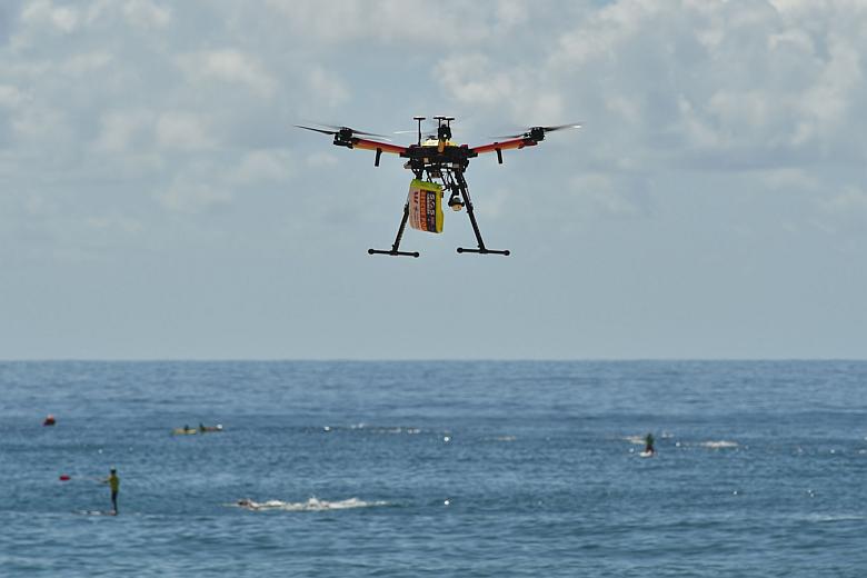 SYDNEY (AFP) - High-tech shark-spotting drones are patrolling dozens of Australian beaches this summer to quickly identify underwater predators and deliver safety devices to swimmers and surfers faster than traditional lifesavers.
