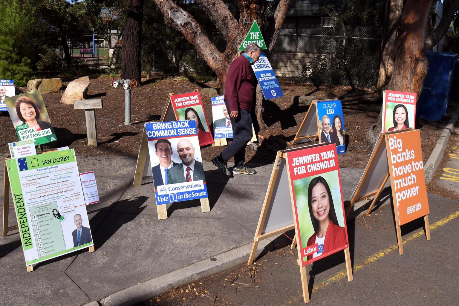 Placards for candidates in Australia's May 18 election. Australian Prime Minister Scott Morrison's government won the election, in defiance of every major public survey.