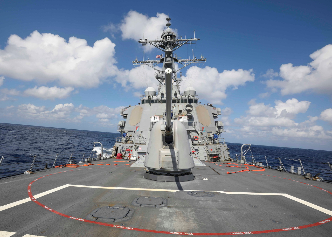A US Arleigh Burke-class guided-missile destroyer conducts underway operations in the South China Sea on Jan 20, 2022.