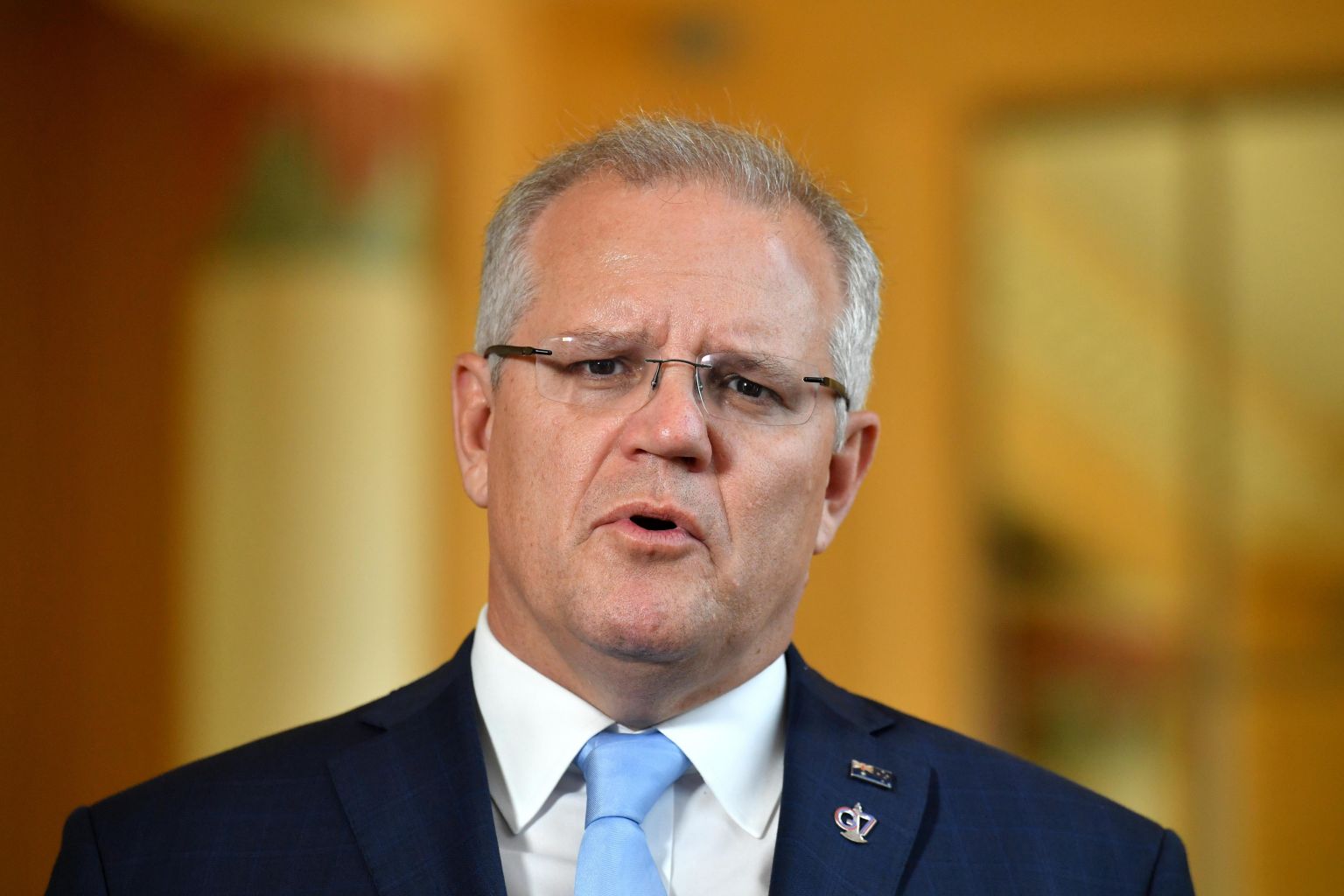 In a photo taken Aug 26, Australian Prime Minister Scott Morrison speaks during a press conference at the G-7 Summit.
