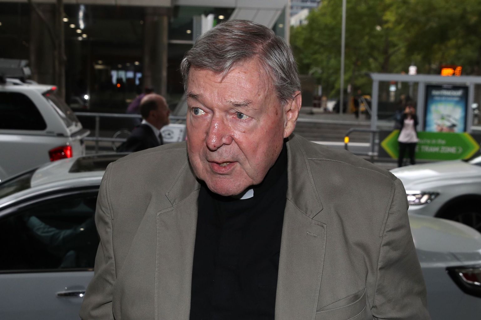 Cardinal George Pell arrives under police protection for a hearing at the Melbourne Magistrates Court after being charged with historical sexual assault offences on March 29, 2018.