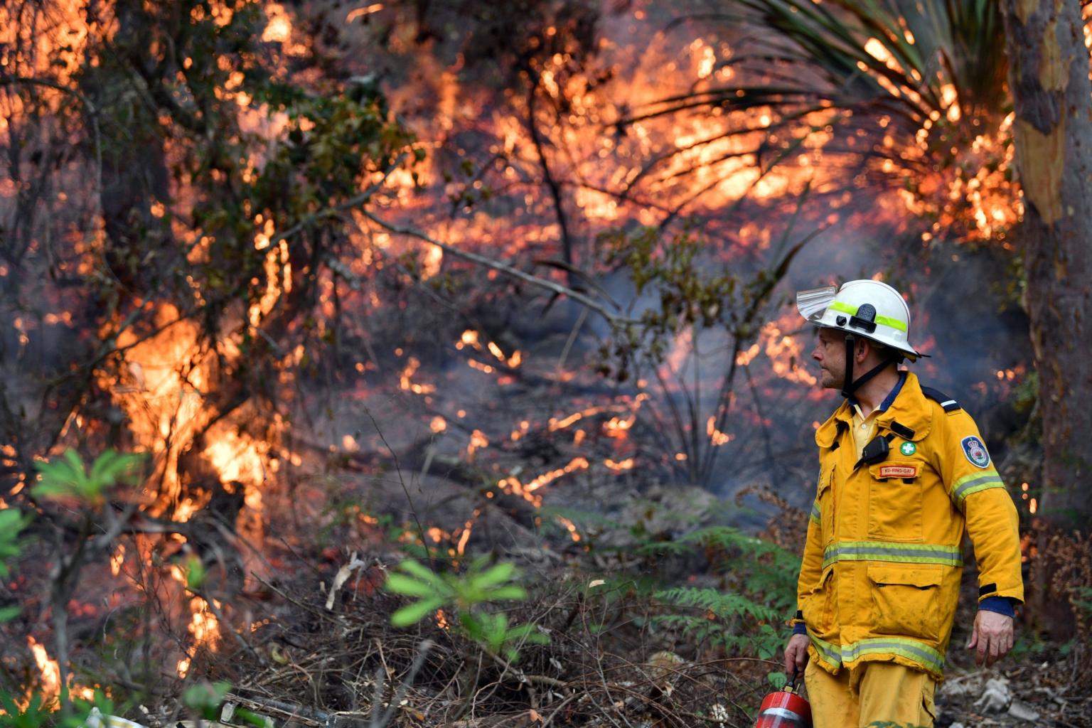 A firefighter responding to bush fires at the Spencer area in Central Coast, some 90 to 110km north of Sydney, on Dec 9, 2019.