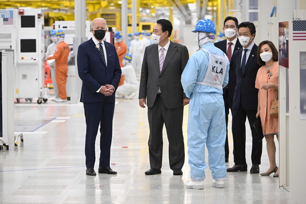 The factory visit is deemed a sign of US-South Korea solidarity against China’s growing reach in chips and to flaunt to Beijing the close ties between Washington and Samsung, amid US efforts to fix a domestic shortage of chips.