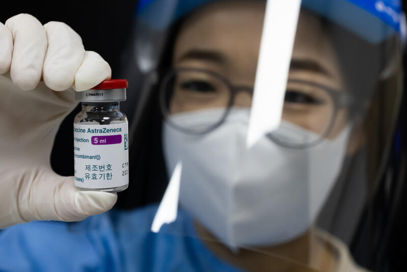 A nurse holds a vial of the AstraZeneca Plc Covid-19 vaccine at the Nowon District public health center in Seoul, South Korea, on April, 14. 2021.