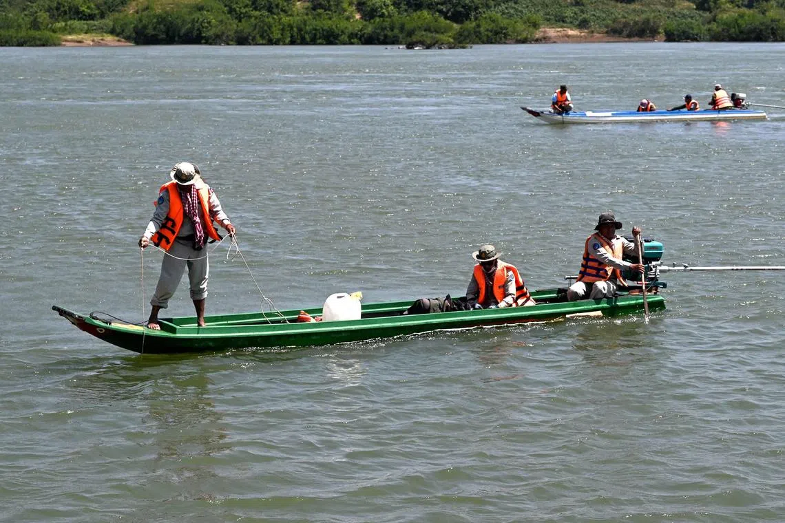 River guards searching for illegal fishing nets that could harm freshwater dolphins living in the Mekong River in Cambodia’s Kratie province.