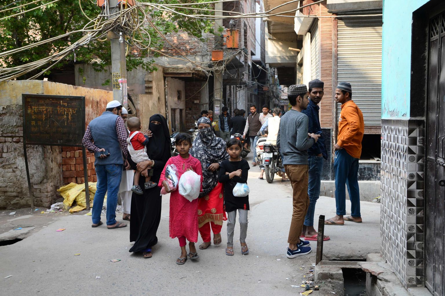 Residents walk along a street in a riot-affected area in New Delhi on March 1, 2020, after violence broke out in India's capital.